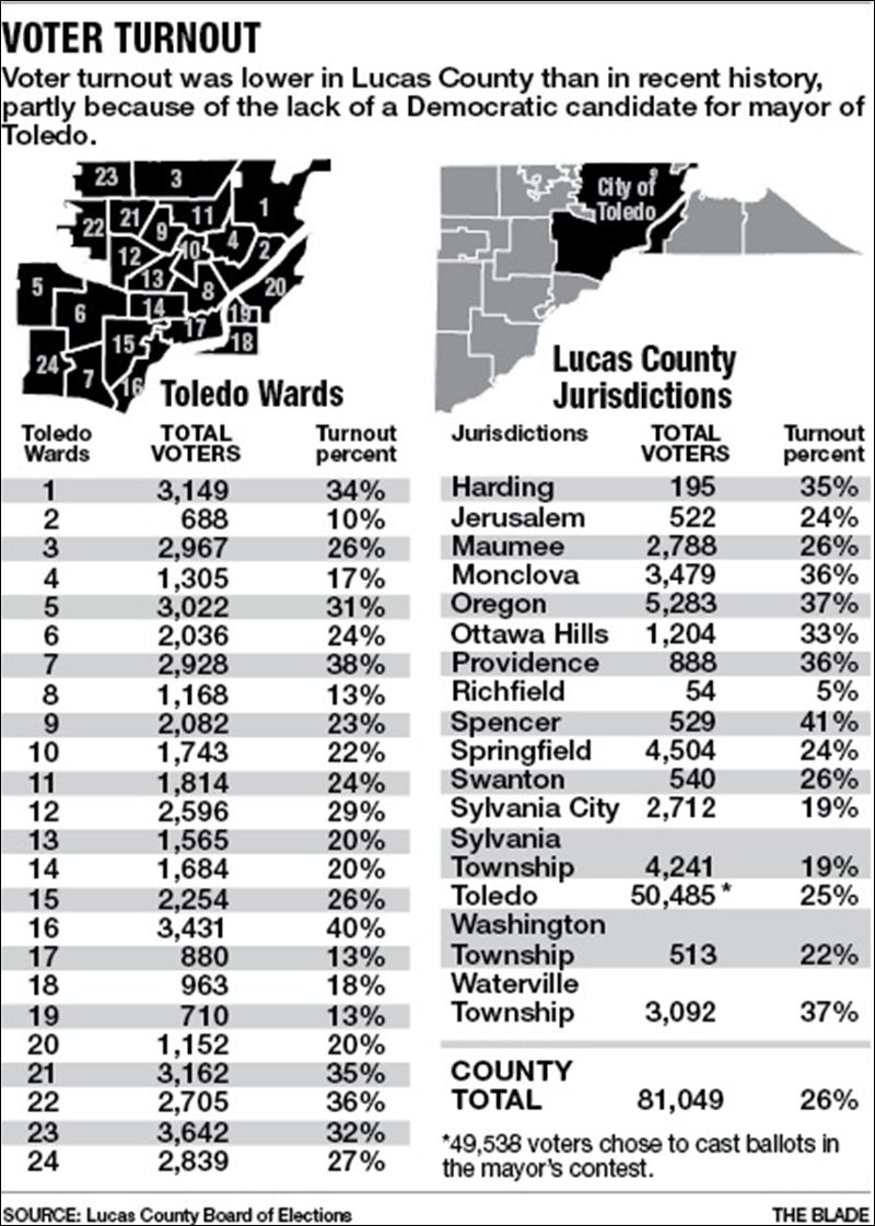Nov 7, 2013 Toledo Blade story by Tom Troy titled Turnout dives over course of city’s strong-mayor setup